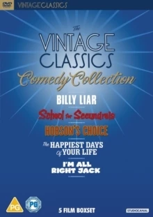 Collection of classic British comedies. In ‘Billy Liar’ (1963) undertaker’s clerk Billy (Tom Courtenay) escapes his dreary small-town existence by living in a fantasy world where he realises his ambitions. When his job, unsympathetic working-class family and two fiancees threaten to become too much, he meets fashionable Liz (Julie Christie), who offers him his one chance for real escape. In ‘School for Scoundrels’ (1960) Henry Palfrey (Ian Carmichael) is one of life’s losers. Despised and disregarded at work, his prospective girlfriend April (Janette Scott) is whisked from under his nose by charming bounder Raymond Delauney (Terry-Thomas). In desperation, Henry enrols at Stephen Potter (Alastair Sim)’s College of Lifemanship, where he gradually learns how to get one up on the other fellow. In ‘Hobson’s Choice’ (1954) Lancashire bootmaker Henry Horatio Hobson (Charles Laughton) keeps a tight rein on his three daughters, until his eldest, Maggie (Brenda De Banzie), marries his assistant Willie Mossop (John Mills) and sets him up in his own bootmaking firm. To Hobson’s consternation, Willie soon becomes his father-in-law’s main business rival. In ‘The Happiest Days of Your Life’ (1950) Nutborne is an all-boys school and content to stay that way, but after an evacuation of local private all-girls school, St. Swithins, the two educational establishments must find a way to co-exist as a battle of the sexes commences. A power struggle between Nutborne’s headmaster Wetherby Pond (Sim) and St Swithins’ headmistress Muriel Whitchurch (Margaret Rutherford) inevitably takes place, leading to much silliness and mayhem. Finally, in ‘I’m All Right Jack’ (1959), upon leaving the army, upper-class twit Stanley Windrush (Carmichael) takes a job in a missile factory. Before long he has inadvertently started a national strike, which is subsequently mishandled by everyone involved.