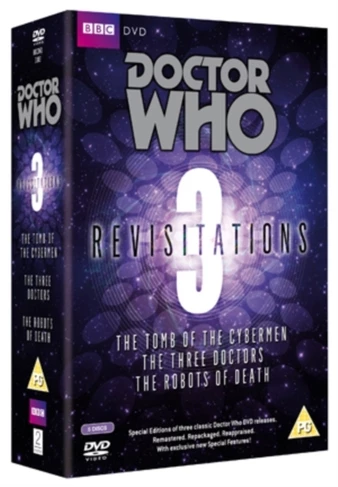 Collection of three classic episodes from the long-running BBC sci-fi drama. In ‘The Tomb of the Cybermen’ the Doctor (Patrick Troughton), Jamie (Frazer Hines) and Victoria (Deborah Watling) arrive on the Cybermen’s adopted planet of Telos to find an archaeological group attempting to enter the Cyber tombs. But are their motives purely academic? The Doctor must do battle with not only the Cybermen, but their killer pets and their leader, the Cyber Controller. ‘The Three Doctors’ teams the third Doctor, Jon Pertwee, with his predecessors, Troughton and William Hartnell, as they battle against an embittered renegade Time Lord in his anti-matter Universe. In ‘The Robots of Death’ the Doctor (Tom Baker) and Leela (Louise Jameson) find themselves under suspicion of murder when the TARDIS lands on a Sandminer, a craft designed to mine valuable ores on alien planets. The vessel is manned by a huge staff of robots and a handful of humans, who are being killed off one by one. After preventing an attempted sabotage of the mine, the Doctor realises that someone has managed to override the robots’ programming, turning them into relentless killing machines.